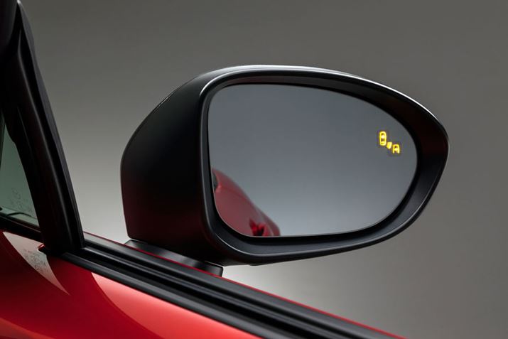 ドアから生えるサイドミラーは、周囲に視界をさえぎるものがなく、斜め前の視界を確保しやすい。これもマツダ車に共通する特徴だ(写真はロードスターのもの)