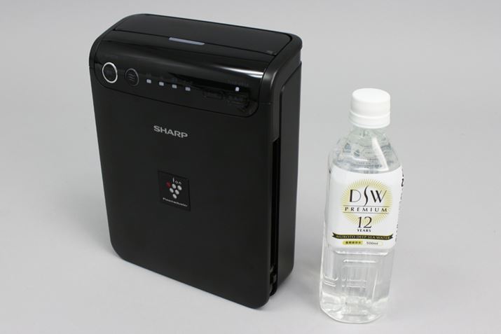 サイズは184(幅)×243(高さ)×77(奥行)mm。同社のカップホルダーに設置できるタイプのイオン発生機(IG-KC15)のサイズは74(直径)×162(高さ)mmなので、大きさの違いは歴然