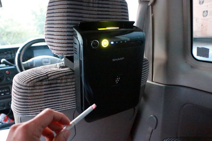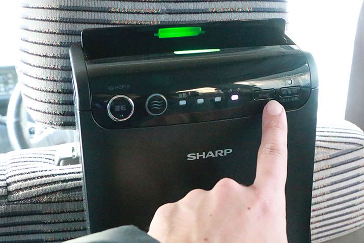 IG-HCF15はエンジンのオン/オフと連動しているので、自動車のエンジンをオンにするとIG-HCF15も運転スタート。自動車を運転しながら、まず一服……とタバコに火をつけると、IG-HCF15はすばやく反応して風量がアップしました。筆者は運転席でタバコを吸っていたのでわかりませんでしたが、後方で確認してくれた人によるとニオイモニターときれいモニターの色が瞬時に変わったそうです。