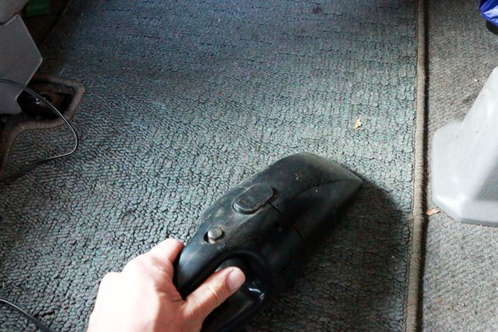 見るからに土ホコリが立ちそうな車内の掃除は、掃除機がけしたり、シートを外ではたいたりして行います。もちろん、この際、自動車のエンジンはオフに。掃除を終えたあと、しばらくドアを開けてはいるのですが、なかなかホコリっぽさは取れません