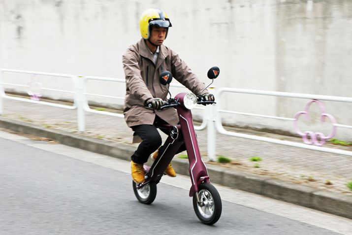 特徴的なスタイルの「BLAZE SMART EV」は、リチウムイオンバッテリーで駆動する電動バイク。サドルや後輪、ハンドルなどを折りたたんで棒状にまとめられるので、置き場所に困らず、持ち運びもしやすいのが大きな特徴だ。簡易な乗り物に見えるが、時速は30kmまで出る。ただし、原付一種に分類されるため、運転するには免許が必要(普通自動車免許でもOK)。もちろん、ヘルメットも着用しなければならない。