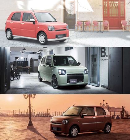 ダイハツ「ミラトコット」の「アナザースタイルパッケージ」。画像は上から、「スイートスタイル」、「エレガントスタイル」、「クールスタイル」