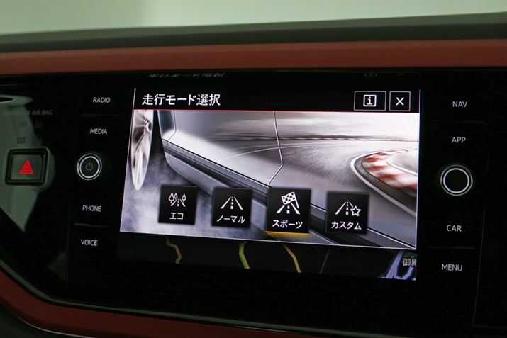 フォルクスワーゲン「ポロGTI」では、「ドライビングプロファイル機能」と呼ばれる走行モードを選択することができる