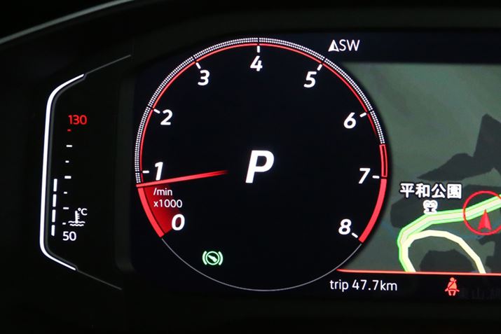 タコメーターは、上昇を始めると軌跡を残すグラフィックなのだが(画面では0-1,000rpmの部分)、レッドゾーンに入ったのかと一瞬とまどってしまう