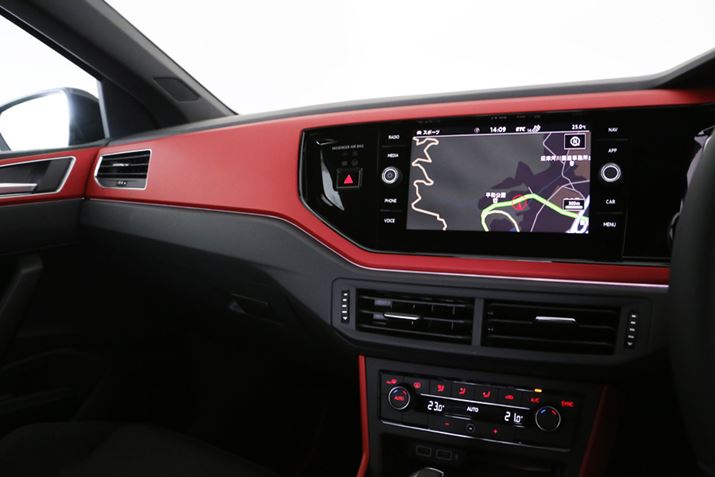 レッドのダッシュパネルが映える、フォルクスワーゲン「ポロGTI」のインパネ