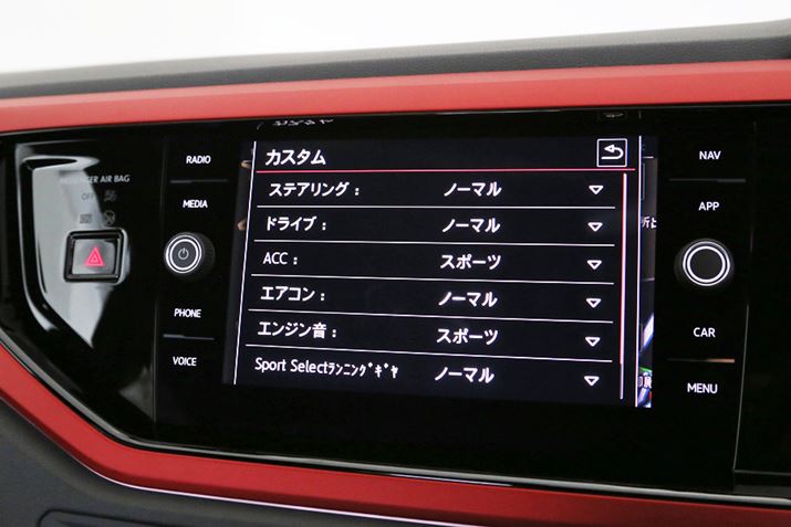 ポロGTIをもし購入したならば、ドライビングモードでアドバンスを選択し、足回りをはじめ、ステアリング、排気音等々ひとつひとつ好みに応じてセッティングする楽しさを満喫するだろう。このメニューは7種類と多岐にわたるので、かなり好みの仕様に仕上げられる。個人的にはその多くのメニューでスポーツを選んで間違いないと感じている。