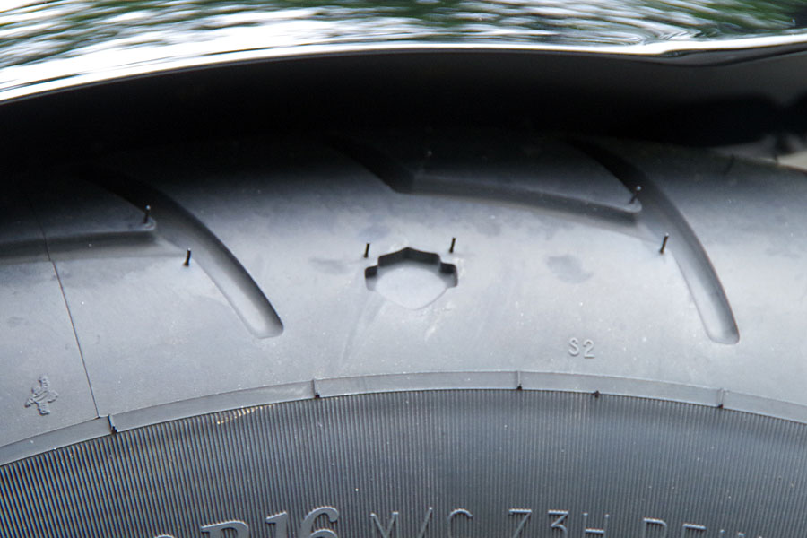 タイヤはミシュランに作らせた専用のもので、グリップ力よりライフが重視されている印象だ。タイヤのいたるところに“隠れ”ハーレーエンブレムが施されている