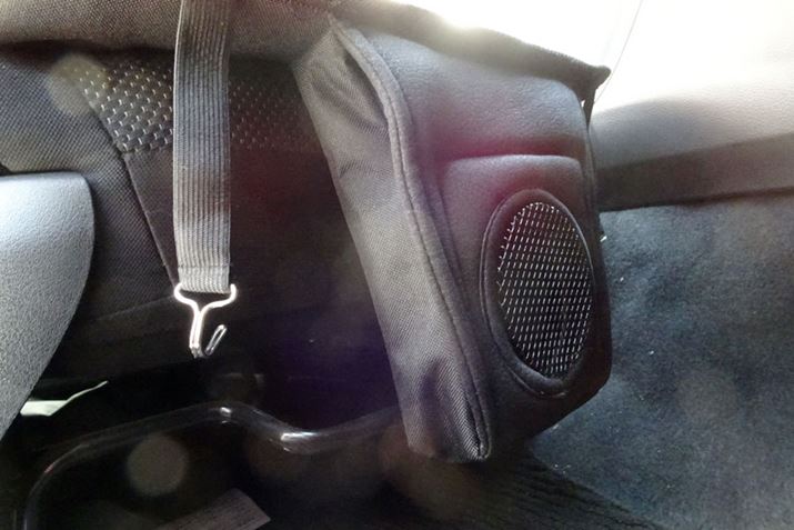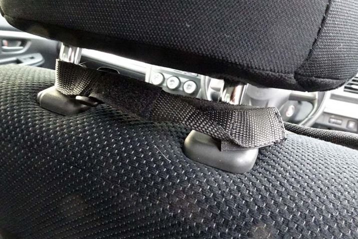 本来はヘッドレストの棒に引っ掛けて固定しますが、このように、ただ置くだけでも問題なく使えました