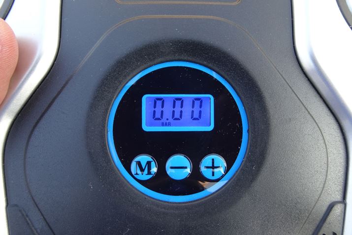 エンジンがかかっているクルマのシガーライターソケットに差し込むと、「0」が表示されます。単位は、BAR、PSI、KPA、kgf/cm2の、4種類から選択可能です