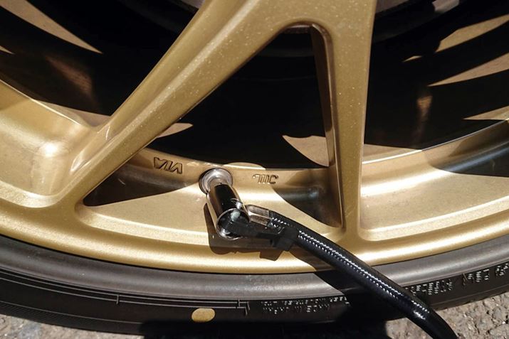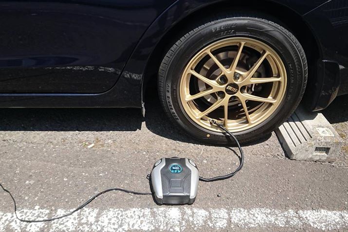 ものの1分少々で規定値まで充填できました。念のため、一度抜いたら再度エアーノズルをつないで正常な空気圧が保たれているか確認しましょう