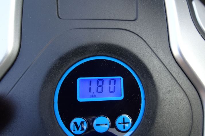 本体のデザインやコード類の格納性が秀逸なのも注目ポイントですね。実際に試すと、確かに空気の充填はきわめて簡単、かつ確実に行えました。半年ほど放置してしまい、空気圧が極端に減ってしまったタイヤにも短時間で規定値まで充填できたので、パワー的にも不満はありません。騒音も、屋外で使う分には特に問題ないレベルです。一般的なエアコンプレッサーと違い、数値がデジタル表示されるので、小数点まで見やすいのが気に入りました。