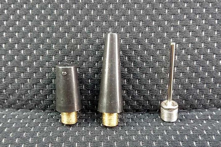 自動車以外にも使えるアタッチメントが付属します。自転車用米式(左)、ボートや浮き輪用(中央)、バスケットボール用(右)