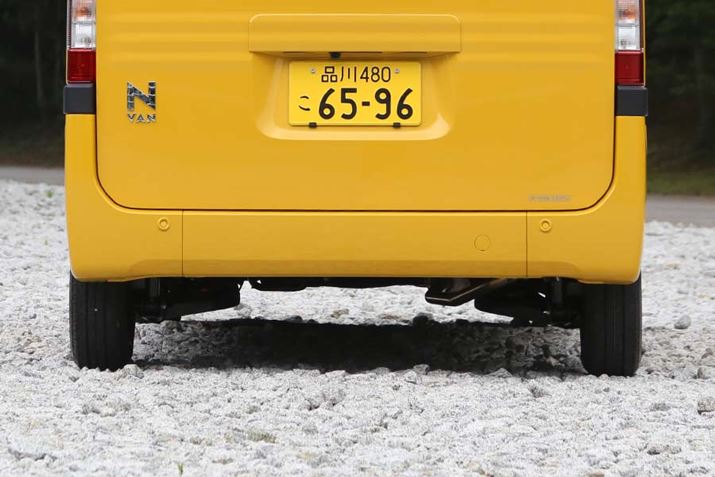 少し脱線するが、ここで開発エピソードをひとつご紹介しよう。N-VANのスペアタイヤへの交換はリアバンパーを取り外すことによって可能になる。これは商用車なので、パンクをしても修理剤ではなく、即交換をしなければならないという要望があったからだ。そこで、荷室を犠牲にすることなく場所を探した結果、荷室下に設置され、そこから取り出す方法がなく、バンパーを分割し取り出せるようにしたのだ。