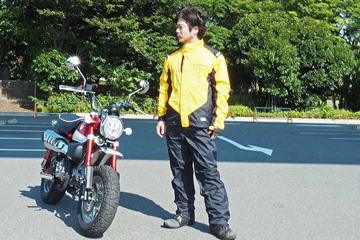 身長165cm、体重64kgの筆者がすべて着て調査! Mサイズを試着しているが、ホンダ「Rentoto WP コンパクトセットアップ」のみ在庫の都合でLサイズとなった