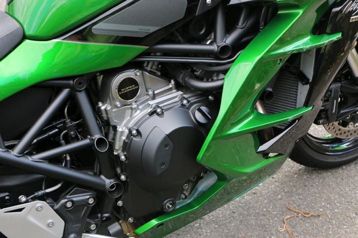 ちなみに、日本国内でスーパーチャージャーを搭載しつつも公道が走れるバイクは、現在、Ninja H2 SXとNinja H2 SX SEのみ。エンジンの回転を利用してコンプレッサーを作動させ、燃焼室により多くの空気を送り込む機構であるスーパーチャージャーは、通常の自然吸気エンジンに比べ、大きくパワーアップでき、かつ、排気ガスの流速に関係なく効果を得ることができるため、低速段階からハイパワーを発揮できる。シビアにパワーをコントロールする必要があるバイクでは、アクセル操作に対してリニアにパワーが立ち上がるスーパーチャージャーは、非常に相性のいい機構なのだ。