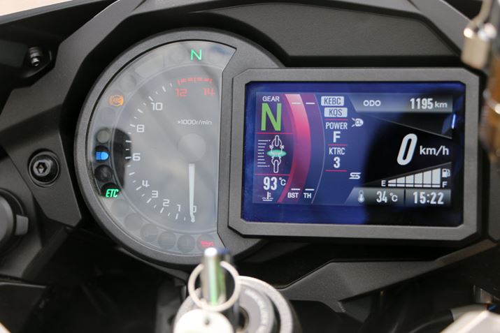 シートは高めだが、両サイドが大きくえぐられたような形状となっているため、足つきもまずまず(筆者の身長は175cm)。ライディングポジションはスーパースポーツモデルほど前傾していないものの、ツーリングモデルと考えるとちょっときつめだ