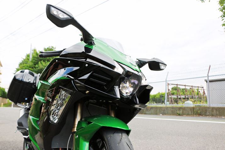 ヘッドライトとは別に、左右のカウルに車体の動きを感知して点灯するコーナリングライトが装備されているのもNinja H2 SX SEならでは