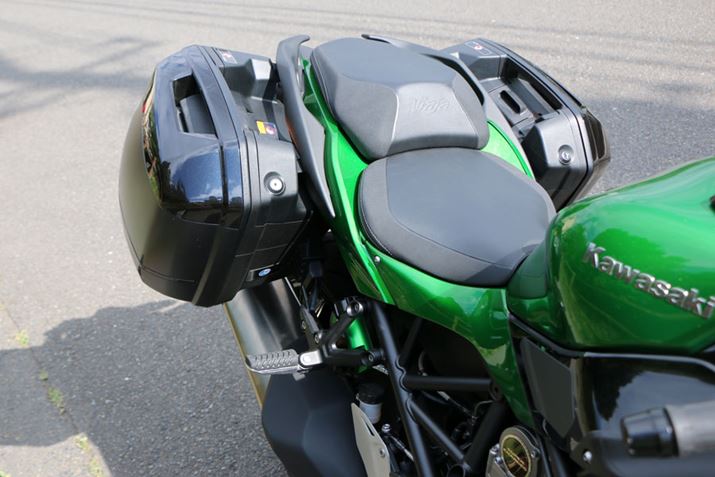 「Ninja H2 SX SE」のサイズは2,135(全長)×775(全幅)×1,260(全高)mmで、車重は260kg。リアにあるパニアケースはオプションとなる