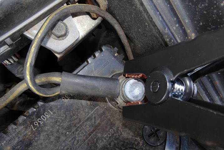 エンジンが始動できたら完了なので、クランプを外します。バッテリーが死んでいる場合でも、クルマ側の充電機能が正常なら普通に走行可能ですが、速やかに新品バッテリーに交換しましょう。マニュアルトランスミッション車の場合、路上でエンストしてしまうと自力では再始動できない可能性が高いので、エンストにはくれぐれもご注意ください