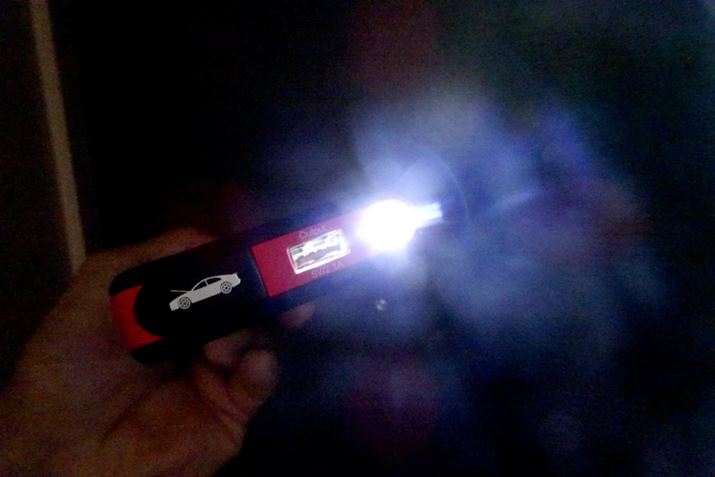 付属のLEDライトは、たとえば暗闇の中でクルマのバッテリー端子とジャンプスターターをつなぐなどの作業ができるほどの十分な明るさを発揮。有事の際には懐中電灯代わりにもなるでしょう