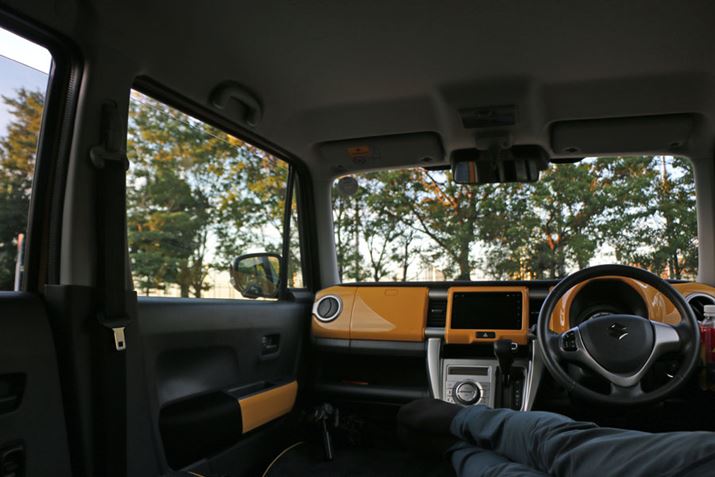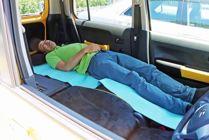 やはり、ヨガマットの厚みではゴツゴツとした感触は身体に伝わってくる。車中泊用やキャンプ用のマットを用意したほうがいいかも。それでも完全に横になれるのは快適だ
