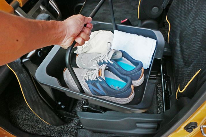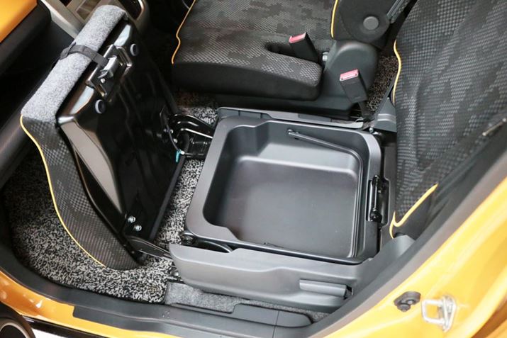 助手席のシート下に設けられた収納ボックスに荷物を入れれば、横になるスペースがより広く確保できる