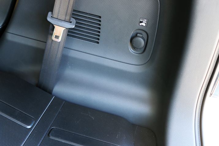 車体の最後部にシガーソケットがあるのも便利。前席と後席を倒した状態で車中泊する際や、アウトドアで電源が必要な時に使いやすい位置だ