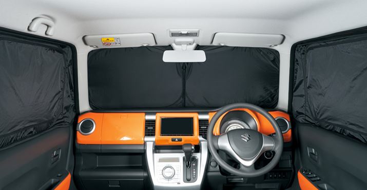 フロントとサイドの窓に「フロントプライバシーシェード」、後方の窓に「リアプライバシーシェード」を装着すれば、外からの光をシャットアウトできるほか、外から車内が見えなくできる。今回、車中泊をしていてもっとも気になったのは人の目と日差しだったので、このアイテムを用意すべきだった……