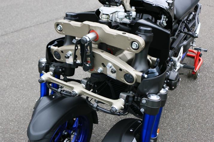 3輪バイクの魅力は、安心して乗れる安定感の高さにある。しかし、その半面、バイクとしての楽しさは少ない。というのも、一般的な3輪バイクは曲がる際に車体を傾けられないものや、前輪はそのままで車体だけが傾くものがほとんどで、2輪のバイクのように車体を傾けると自然とハンドルが切れていく感覚は得られにくいのだ。そんな3輪バイクにおもしろさを加えたのが、2014年に登場した「TRICITY」。前輪2つのタイヤがそれぞれ独立して動く構造とすることで、2輪のバイクに近い感覚で車体を自然に傾けられる3輪バイクを実現した。なお、ヤマハではこのような3輪バイクを「Leaning Multi Wheel(LMW)」と称している。