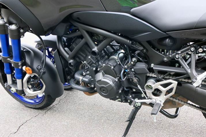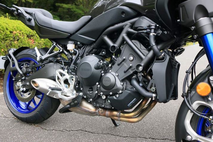 マシンの動力性能については、ヤマハの人気モデル「MT-09」や「XSR900」と同じ、排気量845ccの3気筒エンジンをパワーユニットとして搭載。最大出力は116PS/10,000rpm、最大トルク87Nm/8,500rpmとスペック上の数値はMT-09やXSR900と変わらないが、エンジン内部で回転するクランクの慣性モーメントを18%増やし、よりリラックスしたライディングを楽しめるような特性にしている。燃料を噴射するFIのセッティングもゼロからやり直しているという。