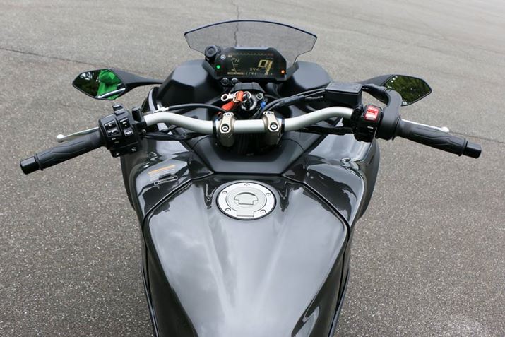 ハンドル周りを軽量にするために、メーターはデジタル表示を採用。風防は最小限であまりサイズは大きくない