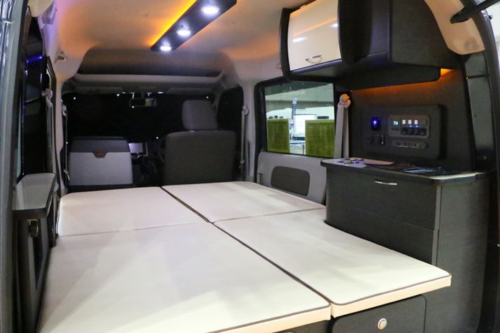 室内の仕上げも上々。ポップアップさせたルーフ部分に寝られるほか、ソファもベッドに展開できる