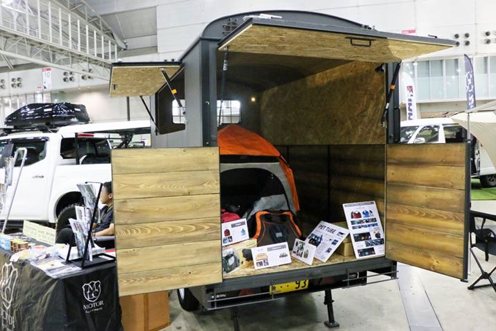 日産がスペインで生産している「ナバラ」は迫力ある外観ではあるが、どこか都会的なスタイリッシュさも感じる。そんなナバラはトレーラーを牽引するスタイルでの展示とされていた。ひいているのは、モーターロジックカンパニーが販売する「MOTOLA(モトラー)」というトレーラーで、トランスポーターや移動店舗、モバイルオフィスなどに活用できる新基軸アイテムだ。