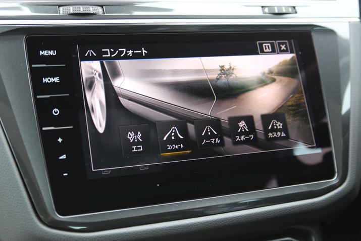 近年、アンダーパワーやエンジンの特性を隠すために、アクセルの踏みはじめを過敏にして、そういったことを感じさせないセッティングをされたクルマを見かけるが、ティグアンに関しては決してそういうことはなく、非常に素直なアクセルレスポンスを備えており、好感が持てた。