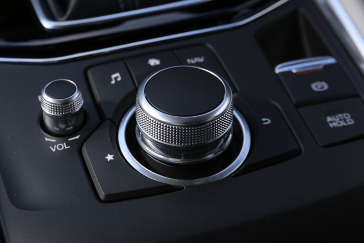 まず初めに試乗するCX-5のクリーンディーゼルモデル「XD L Package」の室内へと乗り込んでも、その印象は以前と変わらない。エアコンパネルと各種スイッチダイヤルのデザインが一新されたくらいだ。ちなみに、このスイッチダイヤルは時計のローレット加工風になっており、触り心地はとてもよく、しっかりとしたグリップ感もあって操作性は非常にいい。