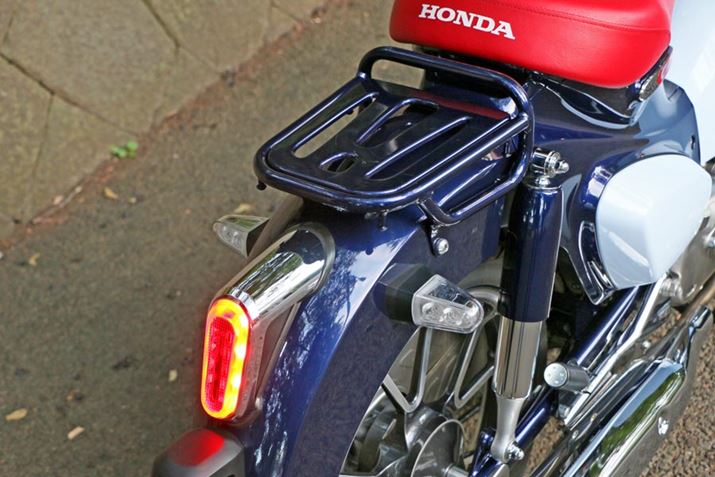 テールランプやウインカーはLED化されたが、配置や形状はC100に近づけられている。後方が絞られた荷台はフェンダーと同色とされ、ビジネスバイクとは思えないほどのデザイン性だ。この荷台がフェンダーと同色となっている点もC100と共通している