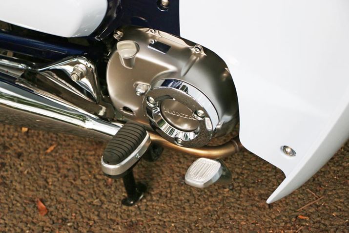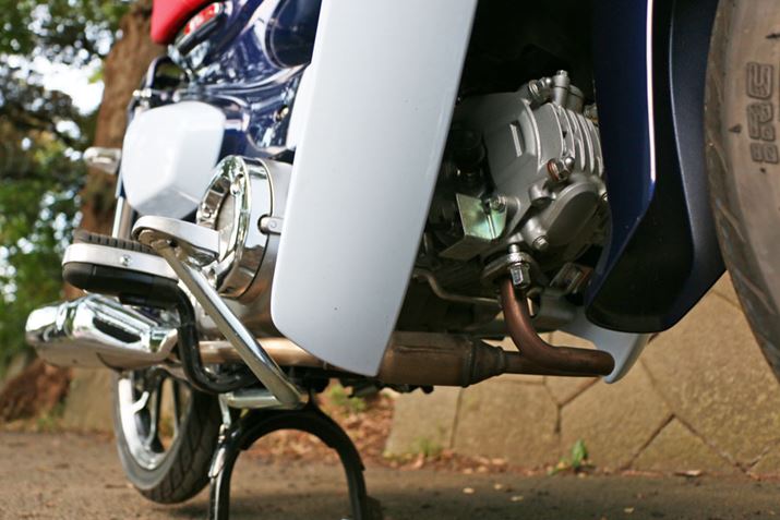 排気量は拡大したが、エンジン設計はシリンダーが水平近くまで寝た横型と呼ばれるスーパーカブシリーズが継承してきたものだ