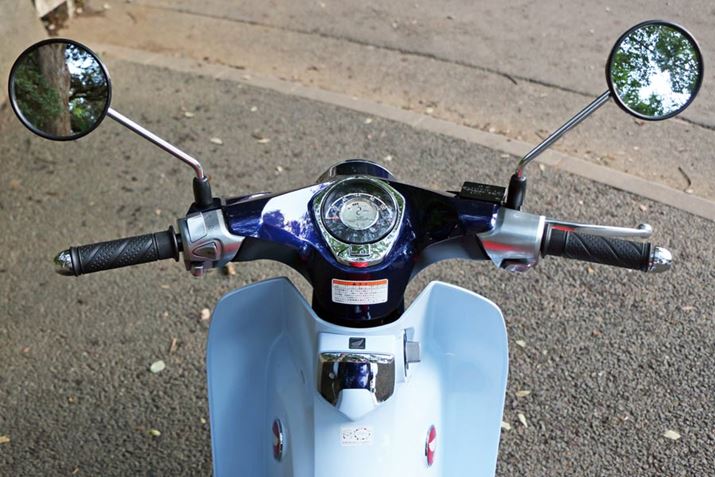 鳥の羽根のように曲線を描いて、やや上に持ち上がった“かもめハンドル”はC100の特徴のひとつ。その形状に近いハンドルがC125にも採用された。2017年に発売された「スーパーカブ50/110」が一直線のハンドル形状だったことを考えても、C125がC100をオマージュしているのは間違いなさそうだ