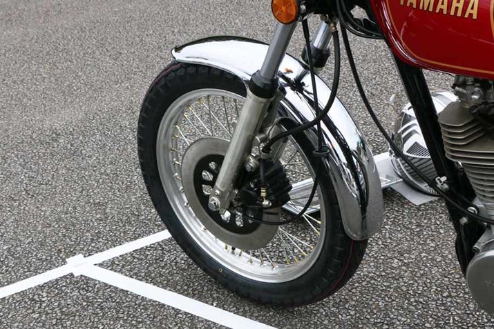 2ストロークエンジンを搭載したバイクを生産してきたヤマハが、初めて排気量の大きな4ストロークエンジンを搭載してリリースしたのが「XS-1」だ。653ccの排気量を持つ2気筒エンジンは、当時の英国車などが採用していたシリンダーが直立した「バーチカルツイン」とされ、初めての4ストロークエンジンとは思えないほどのスムーズさを実現した(ただ、バランサー構造を持たなかったため、振動はすごかったらしい)。デザインの美しさも魅力的で、キャンディグリーンのカラーリングは今でもファンが多く、のちに「SR400」というモデルで再現されたほどだ。
