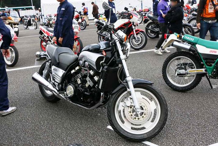 「V-MAX」も4ストロークマシンとして外せない。1,200ccのV型4気筒エンジンを搭載し、145馬力でゼロヨン(0-400mの加速)10秒台というスペックを誇ったモンスターマシンだ。アップライトなライディングポジションはアメリカンバイクを思わせるが、ほかに似たもののないマッチョなデザインで独自のジャンルを築いた。細かいマイナーチェンジは行われたものの、基本設計やデザインは変わらないまま2008年まで生産され、第2世代モデルに移行。そのモデルは2017年まで販売された。