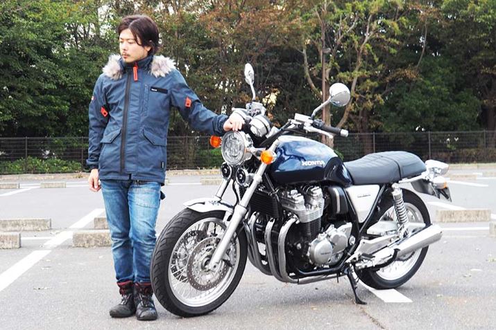 比較的早い段階から街中で着ても違和感のないデザインのライディングウェアを展開している「RSタイチ」の中から選んだのは、ミリタリー風の「タンドラ ウィンター パーカ」。肩、肘、背中にプロテクターを装備しているものの、見た目には存在を感じさせない仕上がりでカジュアルに着こなせる。プロテクターは動きをさまたげない作りとなっているほか、肩と肘のパッドは位置を調整できるので着用時の違和感もない。さらに、表生地には撥水加工が施されており、多少の雨も問題なし。2重構造となった内側のフロントファスナーをきっちり閉めれば、首もとから侵入する雨風も防げる。中綿入りのライナーは取り外すこともできるので、春秋冬と長く使えるだろう。サイズは筆者にちょうどいい感じで、厚手の服を中に着込んでも動きがもたつくこともなさそうだった。