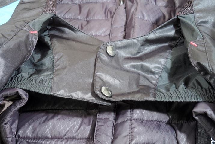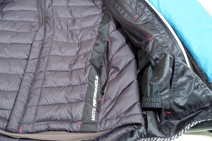 インナーにはダウンのようなボール状になった綿が入っており、ふんわりとした着心地。バイクのタンクが傷つかないようにフロントのファスナーは生地でおおわれているので、インナーだけで着た際の使い勝手もよい