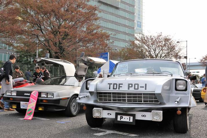 また、こういったイベントでおもしろいのは、映画に登場したクルマを模したモデルがいることだ。今回も「ウルトラセブン」に登場していた「ポインター号」や、その横には「バックトゥザフューチャー」でおなじみの「デロリアンDMC-12」(ちゃんと前にスケートボードが置いてあった!!)、アメリカ映画では定番となる「クラウンビクトリア」のポリスカーや、マイケルと会話ができるかもしれない「ナイトライダー」の「ナイト2000」などが展示され、大いに注目を集めていた。