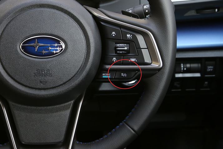 ステアリングの右下にあるのがSI-DRIVEのモード切り替えスイッチ。今回は「S(スポーツ)ではなく「I(インテリジェント)」モードで燃費を測定した