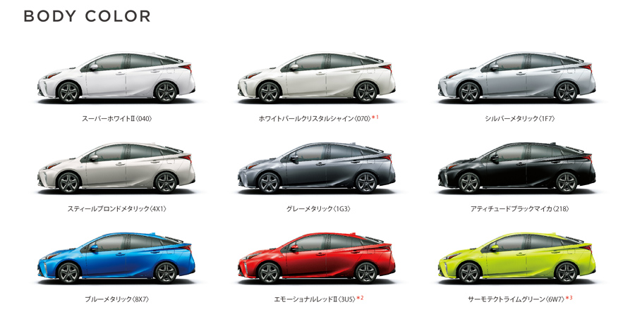 トヨタ 新型「プリウス」のボディカラーラインアップ