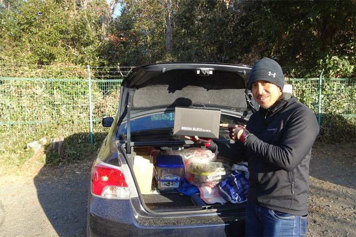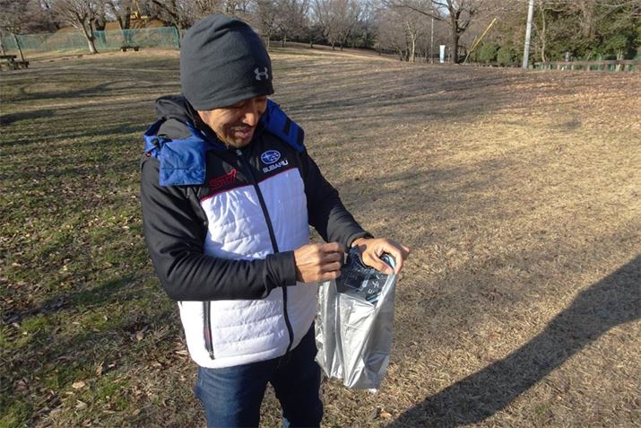 今回はこのボウサイブロックを、真冬の関東エリアで早朝にテストしてみました。外気温は0〜1度くらいでした。