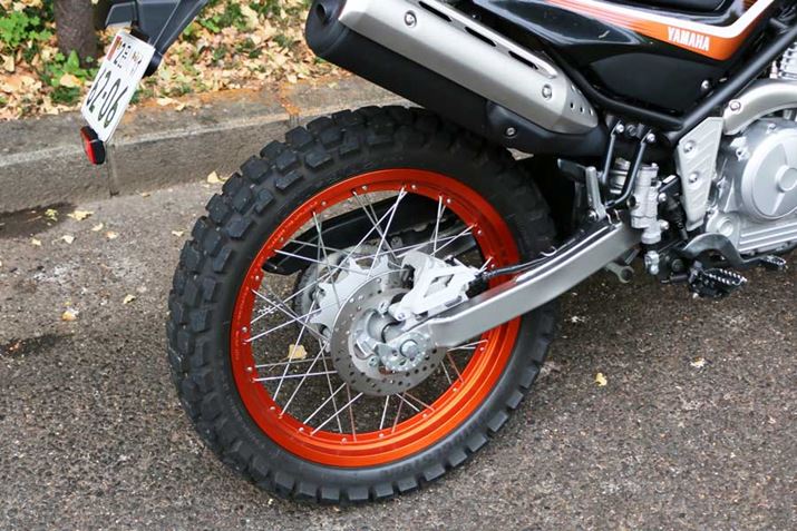 リアホイールは18インチのスポーク式ながら、独特のリム構造とすることでチューブレス式のタイヤを装着可能としている。パンクしにくく、ツーリングなどでもありがたい装備だ