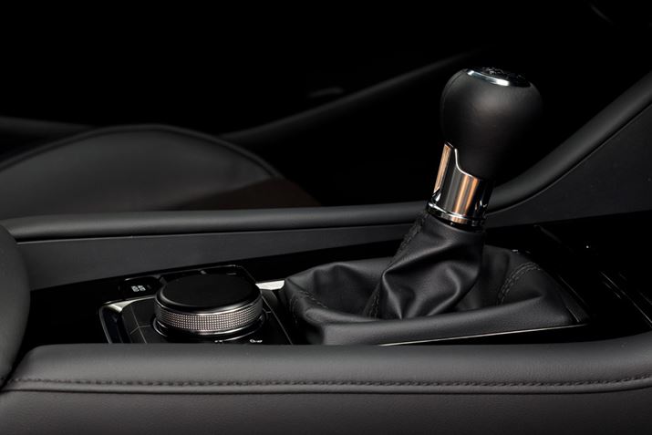 MAZDA3の試乗車は6速MTであったが、走り始めようとシフトをローに入れただけで「ほぉ」と思った。シフトレバーの動きや感触が、しっかりと作り込まれていて心に響くのだ。そして、駐車場からスロープを上がり、まだ一般道にも出ていないのに「なんだ、このなんともいえない気持ちよさと滑らかさは!」と、口に出してしまった。筆者は、試乗時には動画撮影でカメラを回していることが多いので、ついそんなふうに口にしたのだ。
