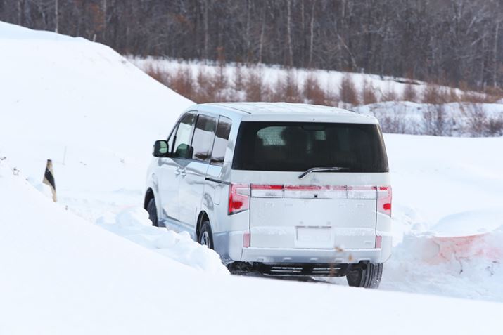 前日の座学で、デリカD:5には電子制御カップリングを搭載したシステムであることを再確認した。ブレーキAWCといった最新技術は持っていないが、走破性を高めるために対角離地対応トラクションコントロールを採用している。システム自体の優越というよりは、実際に深雪などを走っても神経を使うことなく、スムーズに走れることがドライバーにとって有益だということは間違いないだろう。