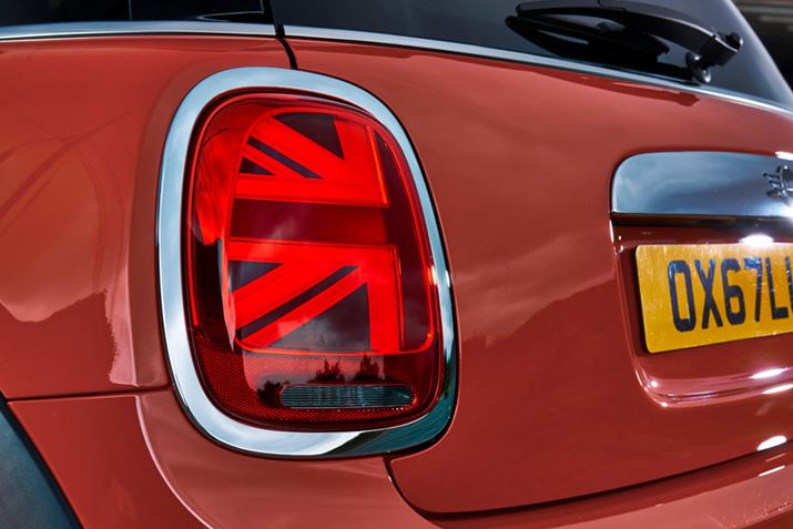 BMW 新型「ミニ」のリアコンビネーションランプは、イギリスの国旗である「ユニオンフラッグ」のデザインが取り入れられていてユニークだ。画像は、海外仕様の「ミニクーパーS」